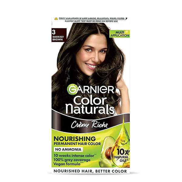 This long-lasting color ensures you won’t find yourself checking the mirror before a big presentation, wishing you had covered those greys. The rich, cream-based formula of Garnier Color Naturals not only delivers a vibrant, darkest brown (shade 3) but also keeps your hair soft, smooth, and nourished.