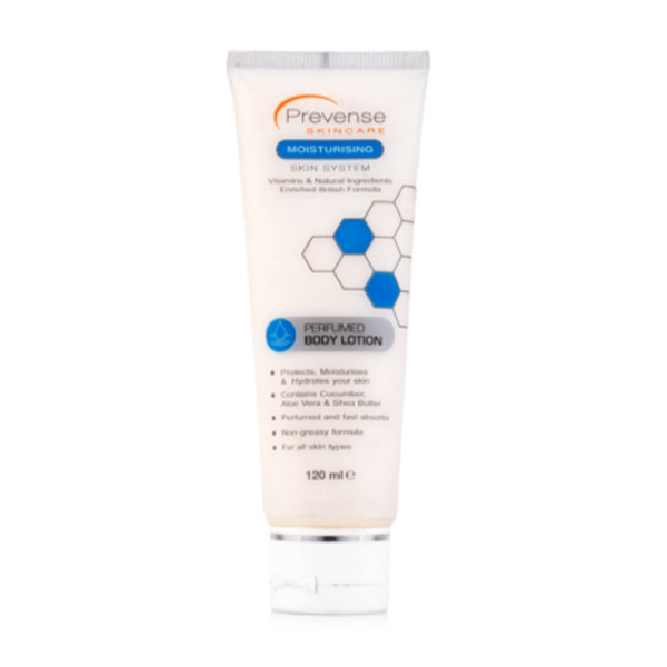 Prevense Perfumed Body Lotion contains a unique formula containing cooling and moisturizing natural extracts including Aloe Vera and Shea Butter. It nourishes and moisturizes your skin and provides a protective barrier against moisture loss for up to 8 hours. Protects against sun damage & exposure, and nourishes skin.