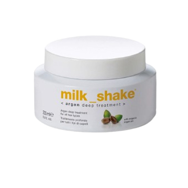 Argan deep Treatment with wheat proteins and organic argan oil, its nourishing formula for all hair types eliminates frizz, sealing the cuticle and giving softness, shine and manageability, preserving hair color integrity