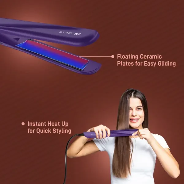 Experience maximum heat retention and even heat distribution with ceramic plates. The long and 1-inch wide plates effortlessly style large sections of hair, ensuring quick straightening for a shiny, frizz-free look. The floating plates are perfect for efficient styling for any occasion or outing, ceramic plates deliver salon-quality results with ease, whether at home or outdoors. Ideal for all hair types.