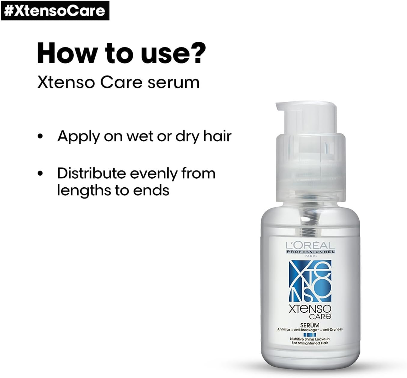 Application is a breeze with L’Oreal Professionnel Xtenso Care Serum. Begin by taking the necessary amount and gently applying it to the lengths and ends of your towel-dried hair. Ensure even distribution by using your hands. Step into your styling routine, leaving the serum to work its magic. Remember, keep the serum away from your roots for optimal results.
