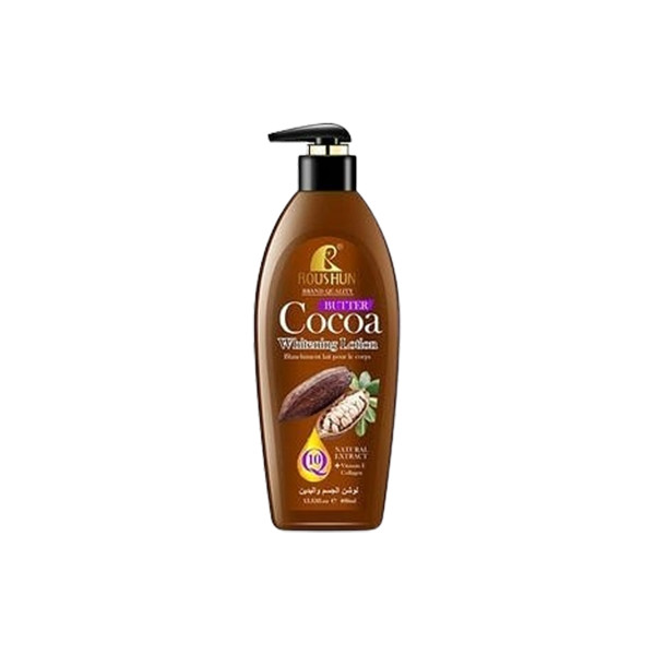 Roushun Pure Cocoa Body Lotion (400ml) is a nourishing skincare product formulated with natural cocoa extract. This lotion deeply moisturizes and hydrates the skin, leaving it soft, smooth, and radiant. The rich cocoa extract provides antioxidant properties that help protect the skin from environmental damage and maintain its natural glow. Its creamy, non-greasy texture absorbs quickly, making it suitable for daily use on all skin types, especially dry or sensitive skin. The lotion also helps improve skin elasticity, making it perfect for restoring moisture balance and enhancing overall skin health. Ideal for both men and women, it leaves a subtle, pleasant scent of cocoa.