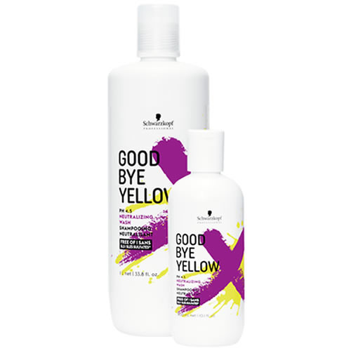 GOODBYE YELLOW® is a hair care solution designed for clients seeking to maintain cool blonde tones. This product neutralizes unwanted yellow undertones, prevents color fading, and enhances color intensity. Formulated with a calibrated combination of purple and blue direct dyes, it gently cleanses the hair while counteracting cool tone color fade.